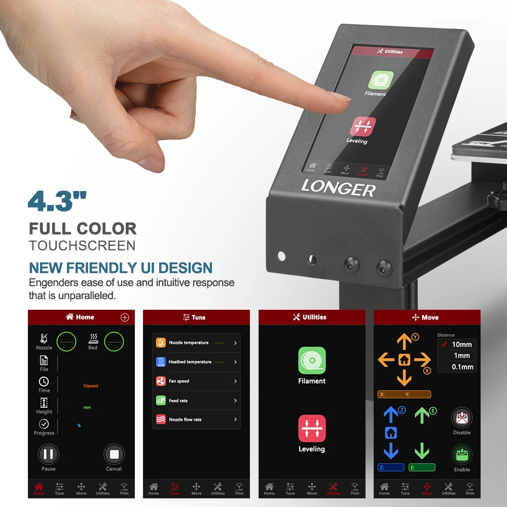 Shop our LONGER LK4 Pro Open Source 4.3” Full Color Touch Screen Full Metal FDM 3D Printer Big Size PLA Fila with price US $315.00 , And get 30%OFF
