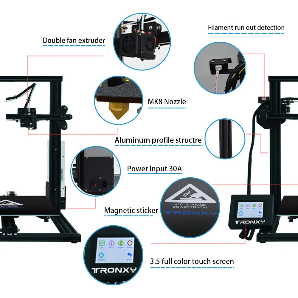 TRONXY 3D Printer XY-3 Kit 3D Printer Large Size I3 310*310 Hotbed V-slot Resume Power Failure Printing FDM printing 3D Drucker : Click Here TRONXY Newest XY-3 3D Printer Hotbed Build Surface Platform Magnetic Heat Paper 310*310mm 1 roll 1.75mm PLA Filament as gift : Click Here 2019 Newest Full metal 3D Printer Tronxy XY-3 Fast Assembly Magnetic Heat Paper 310*310mm hotbed 0.25KG PLA Filament as gift : Click Here
