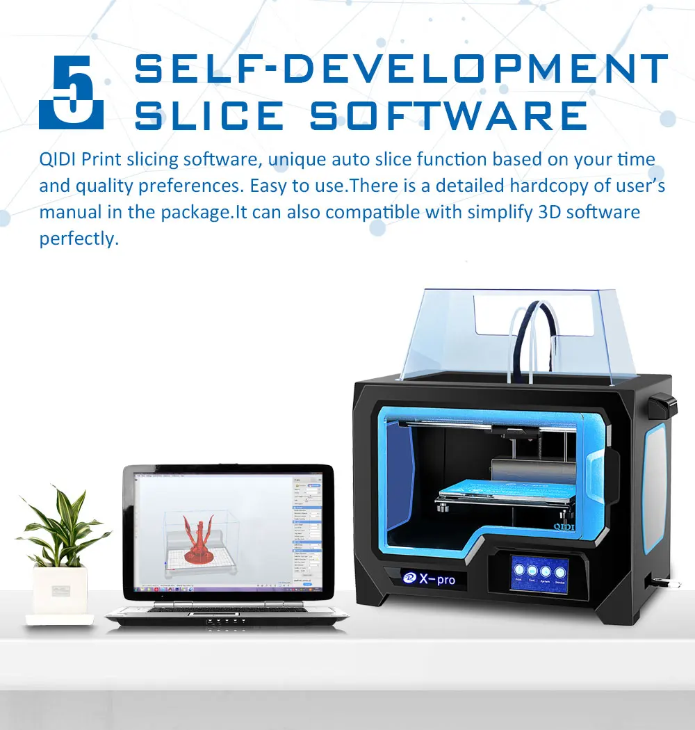 Latest Product QIDI TECH X-Pro 3D Printer Dual Extruder with WiFi 4.3 Inch Touch Screen with ABSPLATPU