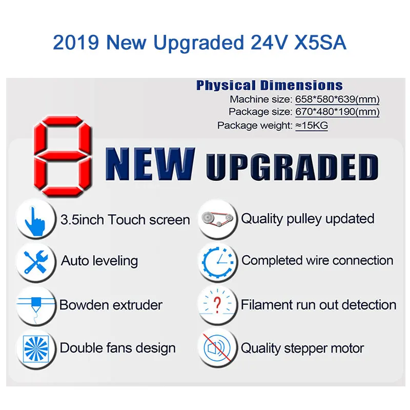 X5SA 24V (24V Power supply+hotbed size:330*330mm+Touch Screen+Auto leveling+Filament sensor+Power failure resume print)