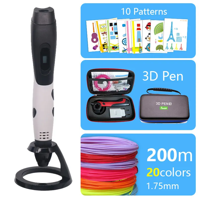 3D Pen+ 5m PLAfilament+ 200mABS filament (20 Colors*10 meter)+2*Anti-scalding finger sleeve